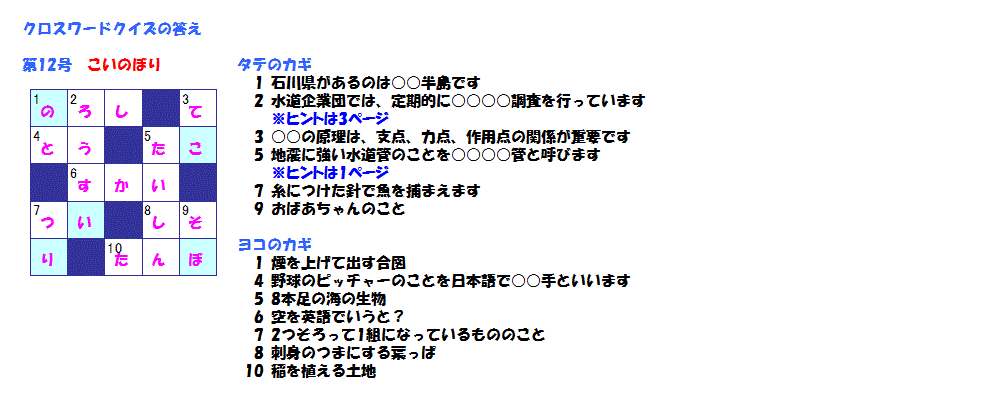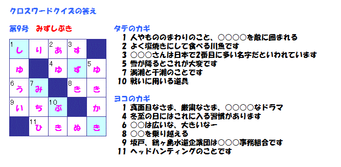 ◆さかつる水だより(PDF形式) クロスワードクイズの答え(GIF形式)